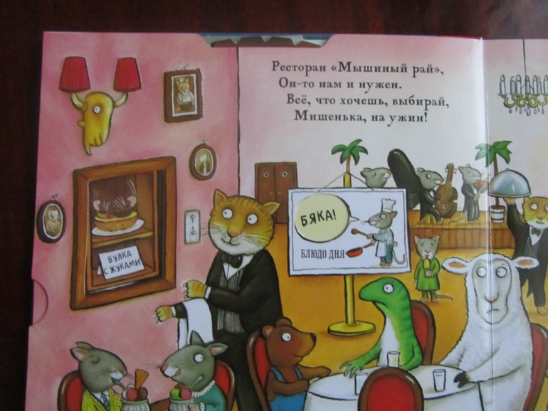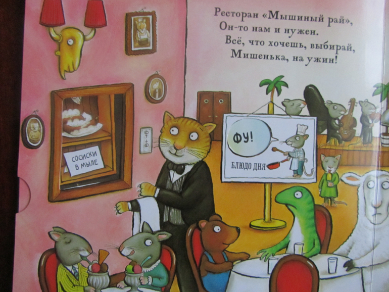 Читаю книгу в основном конечно сыну, но когда доходим до разворота с меню, дочка подскакивает к нам, и они вдвоём начинают хохотать и кривиться над этим странным меню))). По мне так глупость какая-то, но что ещё надо детям ))).