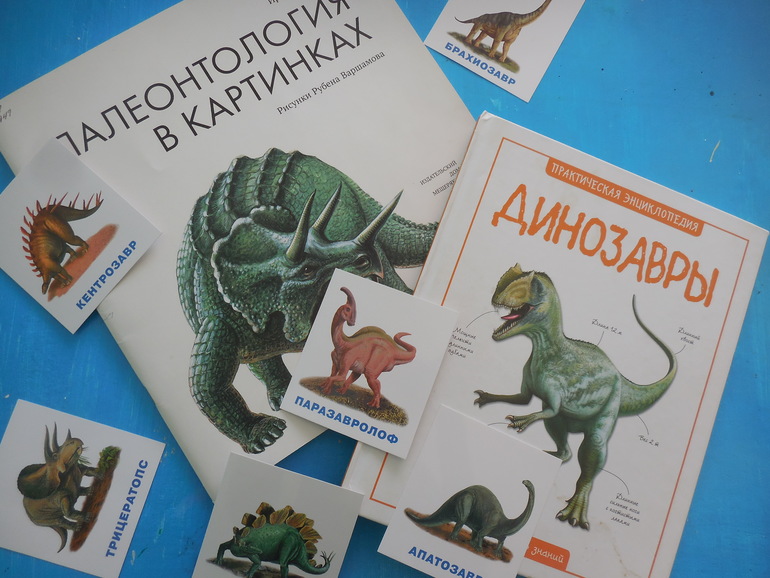 Про динозавров читали книги и карточки, рисовали динозавров, мастерили динозавров...