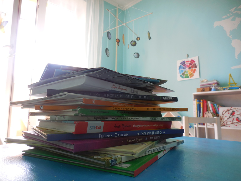 Всё перепуталось в нашей стопочке: книги домашние и библиотечые, книги, которые я читала для Оли, и те, что Оля читала для меня.