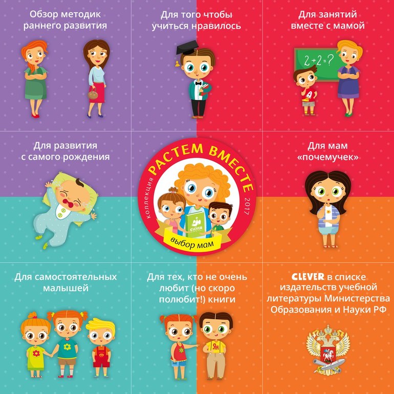 На днях в книжных магазинах появилась весенняя коллекции Clever «Растем вместе». Более 70 книг для занятий с детьми, для раннего развития и подготовки к школе. Все для детей от рождения и до 7 лет. Эти книги выбирали мамы в открытом голосовании. Эти книги яркие, красивые, интересные и смешные, с ними можно играть, с ними можно учиться, с ними учение превращается в развлечение!