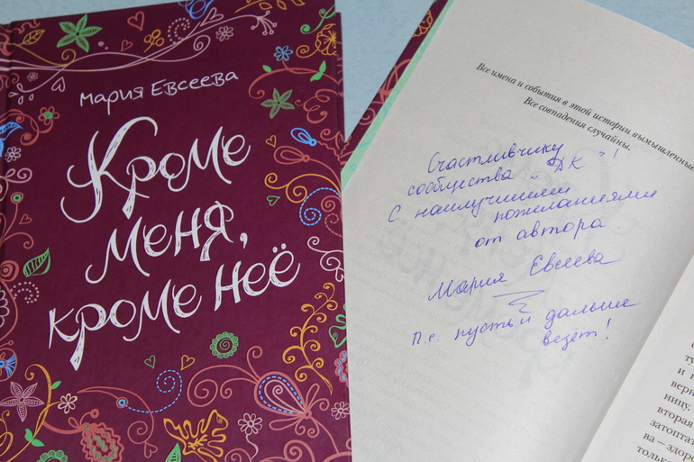 Рандом я уже крутанула, победителя я тоже уже знаю, сейчас и вам сообщу). Но сначала давайте посмотрим дарственную надпись в разыгрываемой книге.