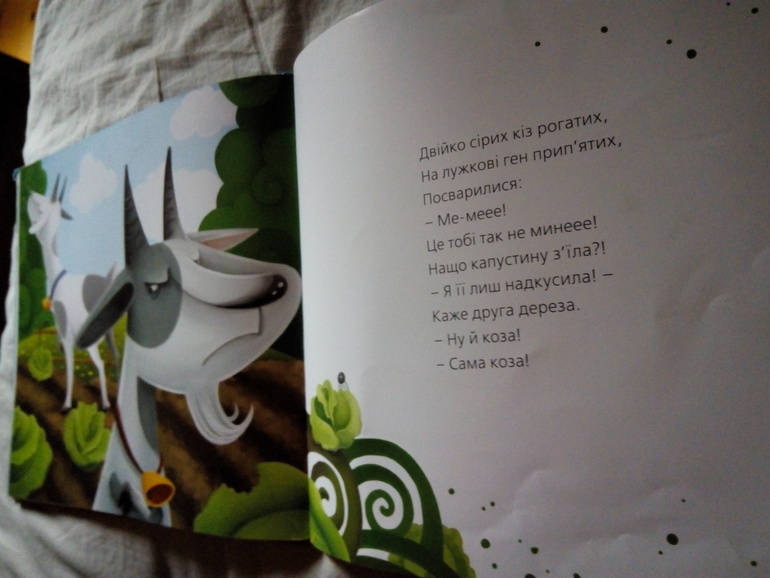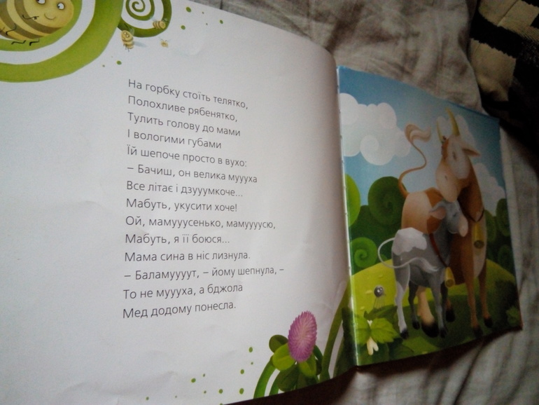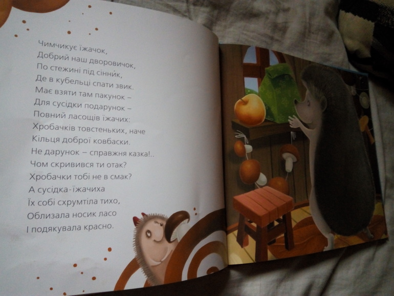 Стихи на украинском языке, очень милые иллюстрации, книга достаточно большая, почти А4, плотные страницы.