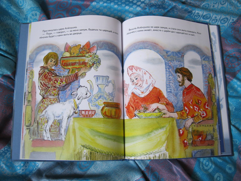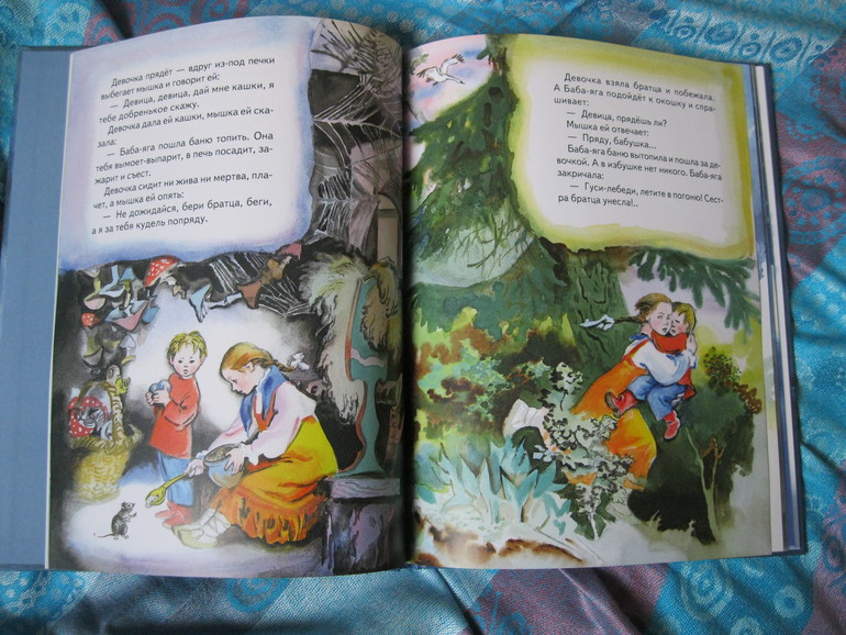 Ну что, сказать честно?) Прочитаны все четыре сказки по кругу несколько вечеров подряд. Подозреваю, что не всё понято, не всё увидено еще читателем, но у Кости была уйма вопросов. Теперь мы знаем, какого цвета серебро (да-да, не удивляйтесь, яблочки-то в "Гуси-лебеди" были серебряные), кто такие "мачеха" и "пряха", отличаем сундук от ларца...