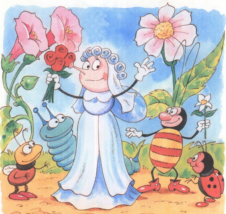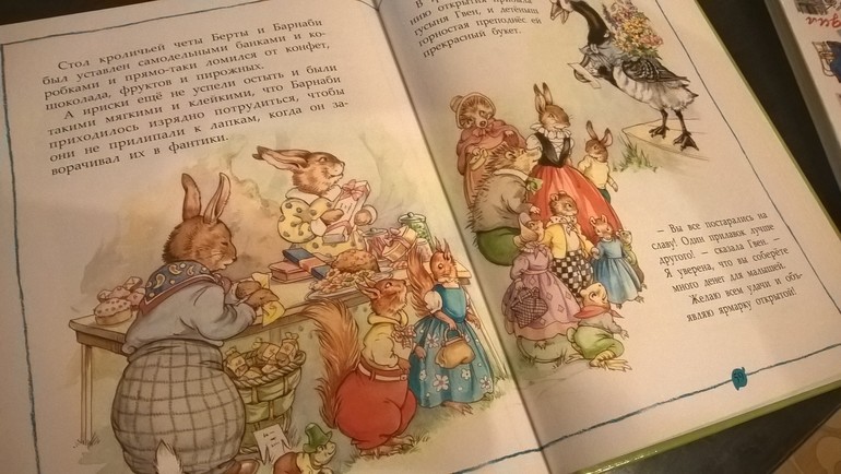 А эту книгу мы сейчас четаем перед сном "Лесные истории" Рене Клок. На картинке ярмарка-сбор средств на праздник для лесных малышей. Цветочный прилавок лисички Викки