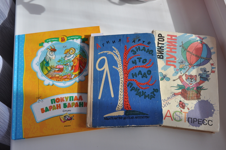 А. Барто "Я знаю, что надо придумать". Несмотря на то, что книжка старая, с черно-белыми картинками, Андрейка ее любит. Читаем из этого сборника выборочно, многое пропускаем, оставляем на вырост.