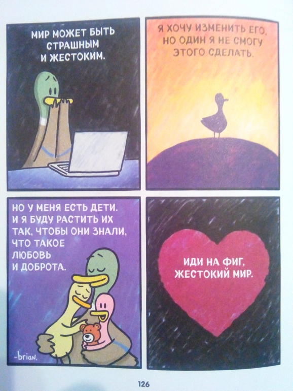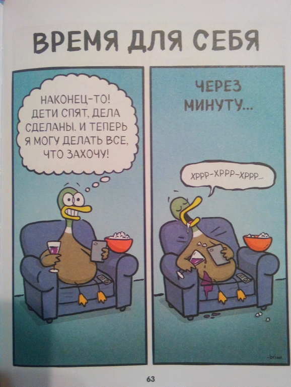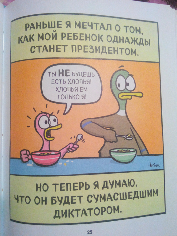 Я заказала эту книгу для себя, увидев всего несколько разворотов, она оказалась очень созвучна моему настроению процентов на 90. Еще порадовало соотношение цена/количество листов (128 л. - 250+ руб). В детских книжках-картинках за такую цену можно рассчитывать максимум на 48 листов. Так что рекомендую всем неидеальным родителям)