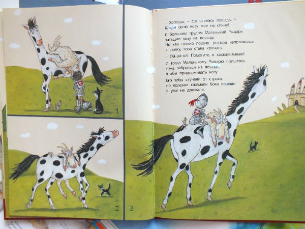 Коза была не против. Это была очень умная коза. Такая умная коза, что наш рыцарь все же научился кататься на лошади и перестал бояться этих прекрасных животных.