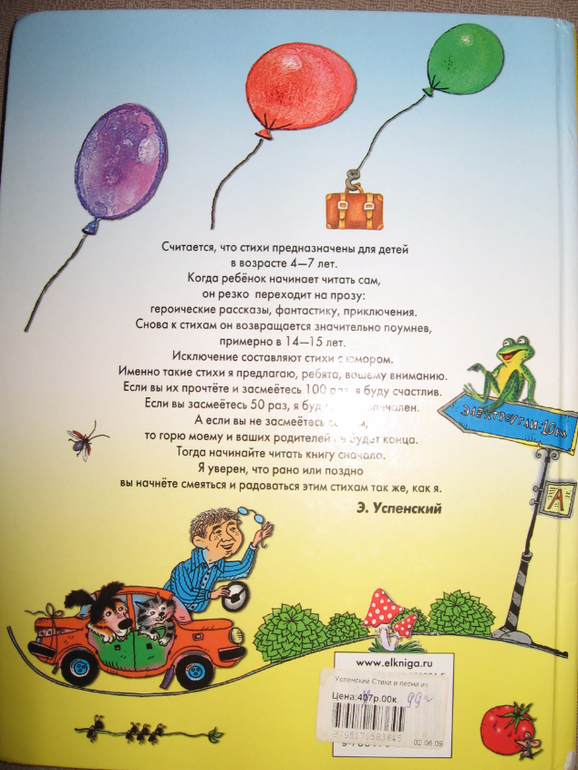 К Успенскому можно относиться как угодно, но отрицать тот факт, что он талантливый автор нельзя. Вновь написанные книги, которые он пытается подстроить под новые реалии, мне категорически не нравятся, а вот старенькие, в том числе и стихи, читаем с удовольствием)