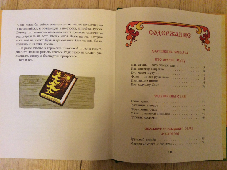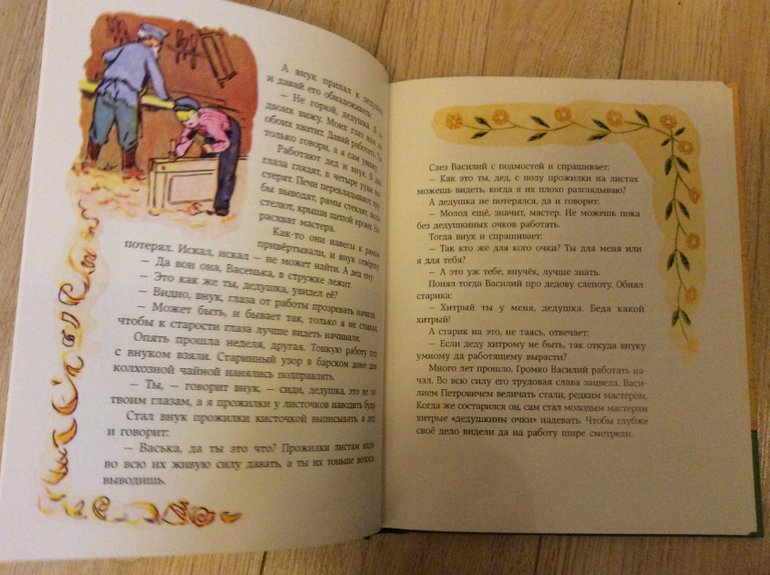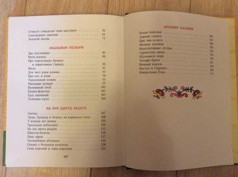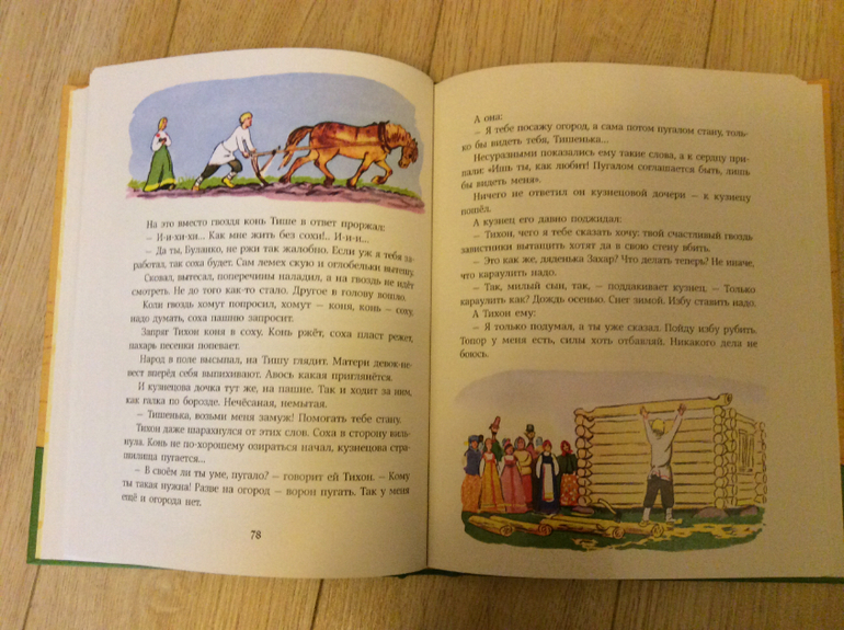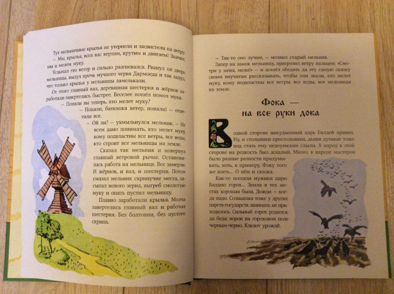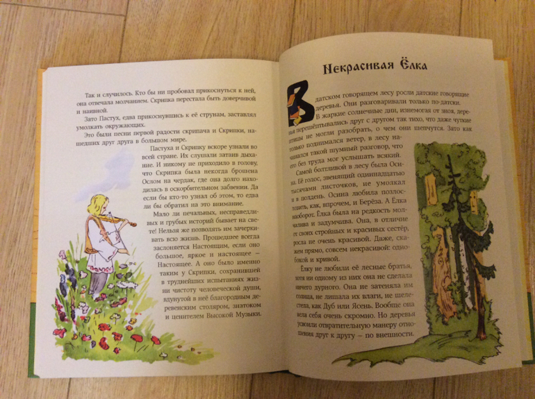Сказки все добрые, поучительные, читаешь и прям приятно становится. А сама книга ОЧЕНЬ красиво оформлена! Шикарная обложка, яркие иллюстрации, её просто в руках держать приятно. В книге 49 сказок, 184 страницы, бумага мелованная, очень хорошо сочетается со всем дизайном, не отсвечивает.