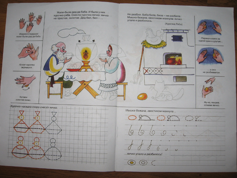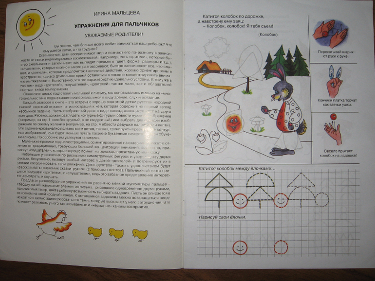 Для игры с этой книгой не требуется каких-то дополнительных трат. Носовой платочек, маленький шарик, карандаши, пара пуговиц, колпачки от фломастеров. Все это есть в каждом доме. Первый шарик у нас был вытащен из погремушки и вполне справлялся с поставленными задачами. Потом, правда, мы купили парочку маленьких мячей с пупырышками, чтобы у каждого был свой колобок. Первый раз я сама проводила все манипуляции с предметами, а потом все это дети проделывали сами. Получается не все сразу, но постепенно все пойдет как надо!