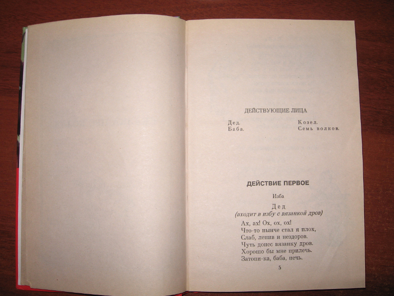 Кроме зрелищных книг, есть у нас пара книг с пьесами. Картинок в них, правда немного и они черно-белые. Обыгрывать полноценно эти пьесы мы не пытались пока, ввиду многочисленности персонажей.