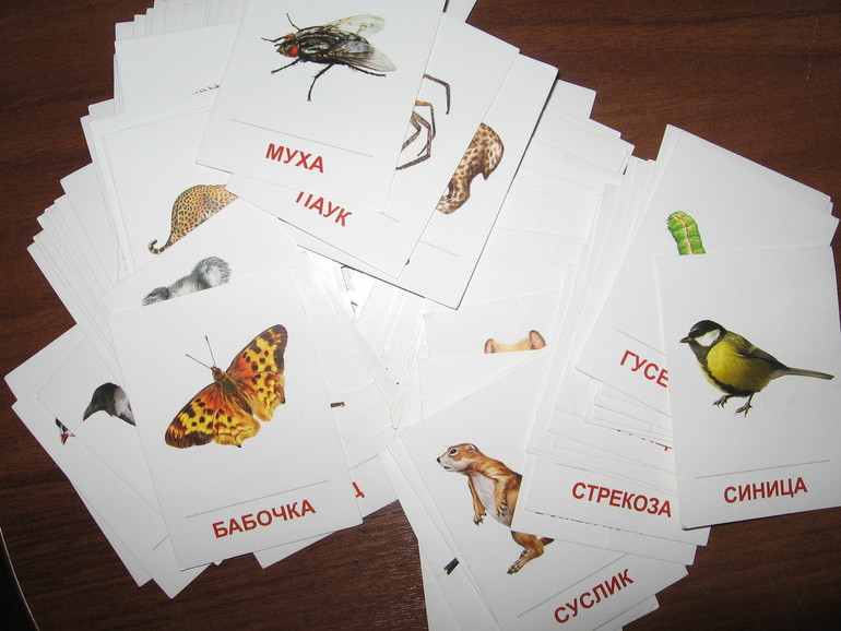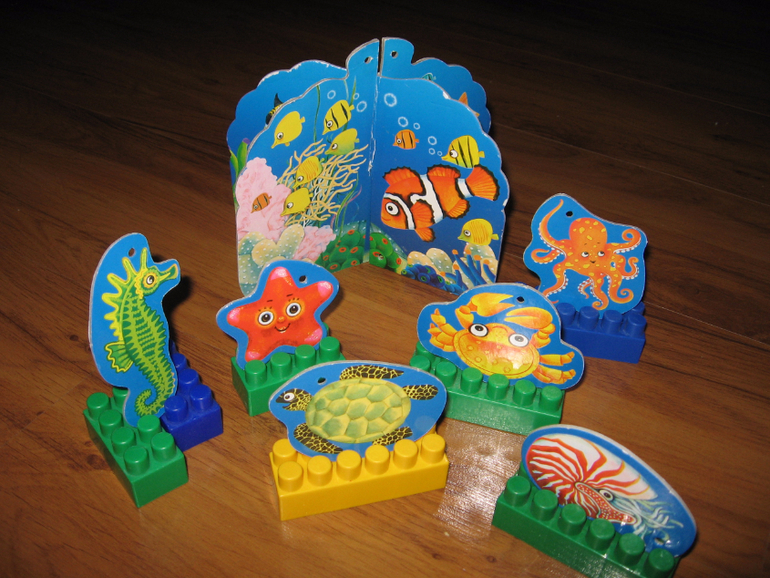 Картинки могут быть и другие. Вот, например, у нас картонные морские обитатели, которые остались от мобиля, тоже иногда используются в игре