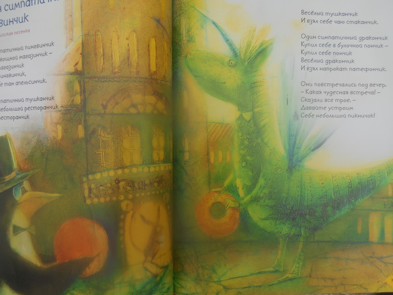 Я всё смотрела-смотрела на этот сборник. И чего смотрела? Куплю! Спасибо, что показали. От "Детской площадки" меня где-то год назад уже потряхивать начало, так мы её заслушали. И книжка-песенник к этому диску, конечно, свою роль тоже сыграла. "Детская площадка №2" нравится чуть меньше, но всё равно любима. Ещё есть сборники "Игра в классиков", кое что из этих двух в сборников вошло в "Детскую площадку №2". У нас как раз месяц Заходера. В этом месяце часто к родителям ездим в гости, там читать особо нечего, я всё перевезла, читаем мой детский сборник Заходера. Там, по-моему, есть всё. От всех стихов до авторских сказок и Винни-Пуха. Иллюстрации чёрно-белые, но сын слушает. Выбираю стихи попонятней, хотя сама не уверена, что он всё понимает. Про людоеда тоже читали. Не думаю, что понял, но слушал.