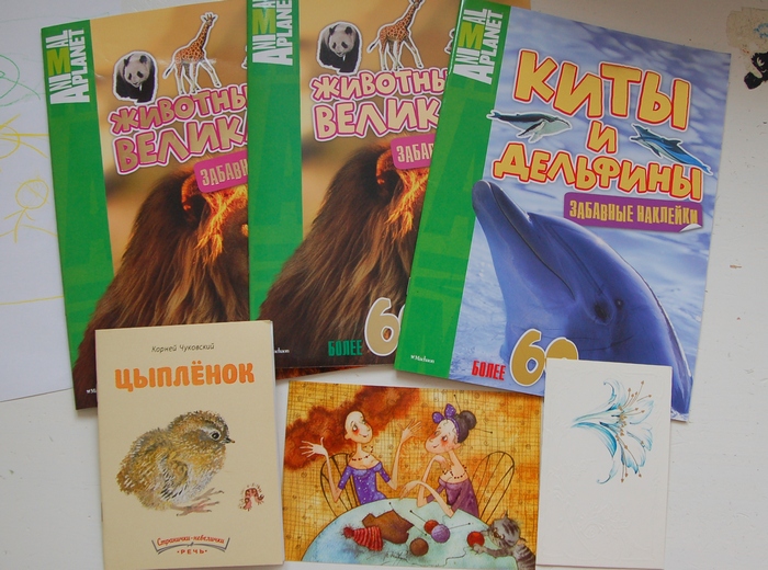 Леночка, книжки с наклейками - просто находка! Мы уже почти все наклеили, но любим смотреть их и просто так и сравнивать животных с другими книгами. (Мама тоже не отставала в наклеивании своего экземпляра!). Цыпленка активно читаем и делаем по нему мини-гимнастику. Спасибо за открытки! Вику Кирдий люблю в современности, а открытка из детства напомнила много разных приятных случаев.