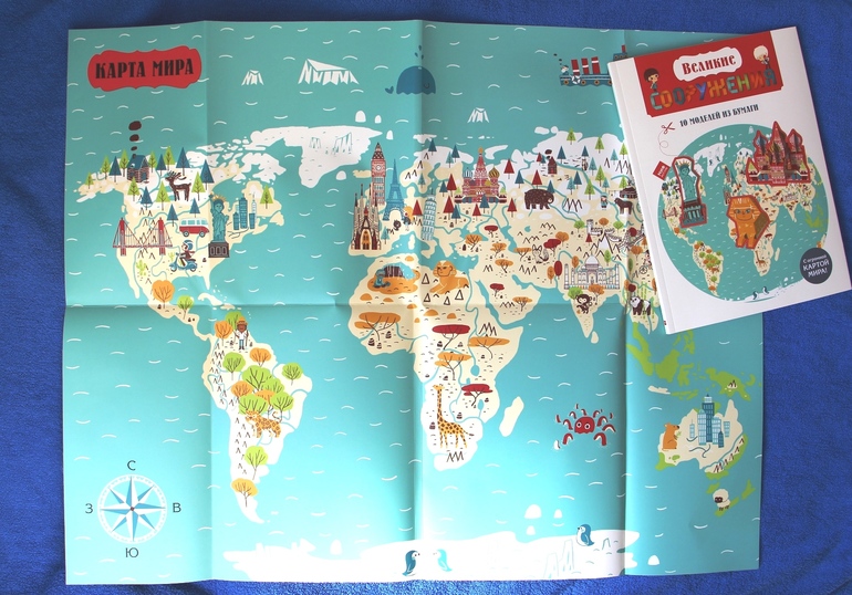 отзывыПредставьте себе карту мира с возвышающимися над материком великолепными памятниками мастерству человека. Конечно, в описании книги указано, что «На внутренней стороне суперобложки есть ОГРОМНАЯ КАРТА МИРА», но что она больше самой суперобложки и намека я не нашла.