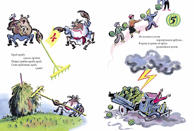 Помимо веселья, книга подарит идею весёлой и полезной игры: заменяя в слове по одной букве, можно создавать новые слова. А ещё эти забавные стихи легко запоминаются, их можно декламировать и петь.