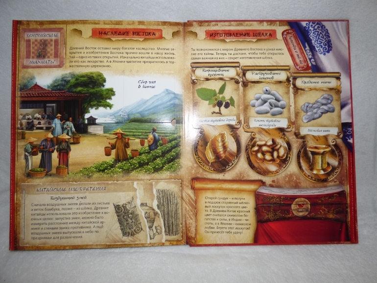 Очень любит нигу "Тайны востока.". Дже в школу ее носил. А когда проходили тему шолкопряда в школе, даже захотел высупить. Перевели на украинский легенды из книги и рассказал в классе.) Очень часто ее почитывает и рассматривает. Любит все с восточным колоритом.