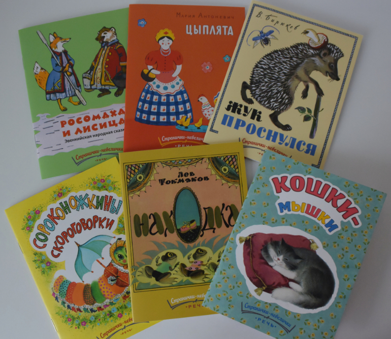 И закругляемся известными всем "Страничками-невеличками" от издательства Речь. Вика их всех нежно любит. До сих пор слушает, либо сама "читает". Из этой россыпи самое любимое у нее "Цыплята", "Жук проснулся" и "Кошки-мышки". В Лабиринте "Странички-невелички" уже не продаются. Да и вообще, смотрю, после пропажи их на Лабе Речь перестала новые издавать...
