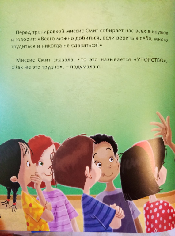 Мою девочку книга заинтересовала, она сама ее вытащила из стопки и прочитала. Сказала, что понравилась, но, конечно, книга расчитана на более младший возраст, лет 6-7. По мере прочтения с ребенком можно обсудить моменты, поговорить про упорство, про веру в себя, про боязнь подвести класс, в тексте такие моменты выделены крупным шрифтом.