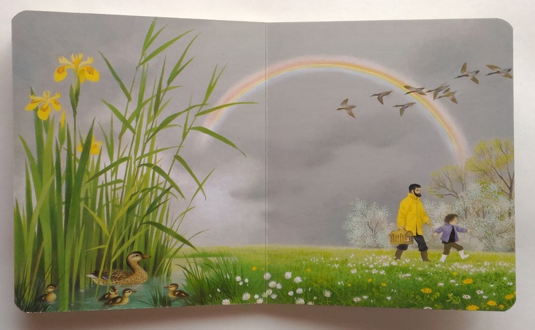 Пока эта книга нравится мне больше, чем Маргарите: всё-таки для годовалого человека стихи, наверное, здесь сложноваты. А вот картинки рассматривать - самое то. Как раз, поговорить о происходящем за окном и том, что мы видим сейчас на прогулках. Мне нравится перспективность этой книги: не на одну весну пригодится нам.