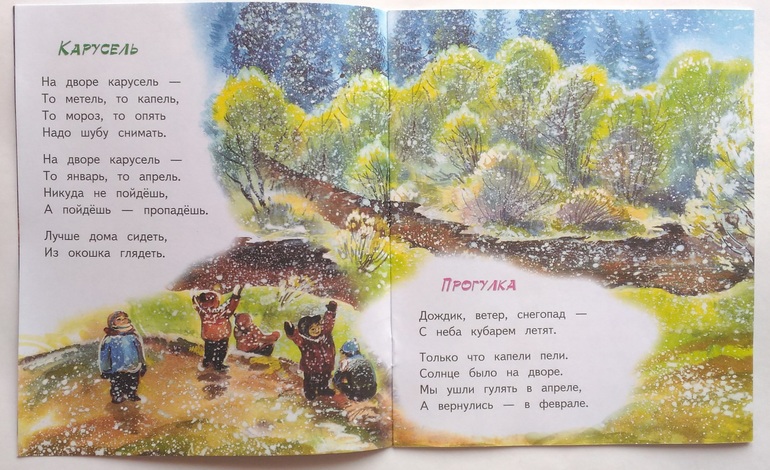 Красивые художественные иллюстрации, русские весенние пейзажи... И стихи, которые очень напоминаю моё детство. Очень приятный экземпляр!
