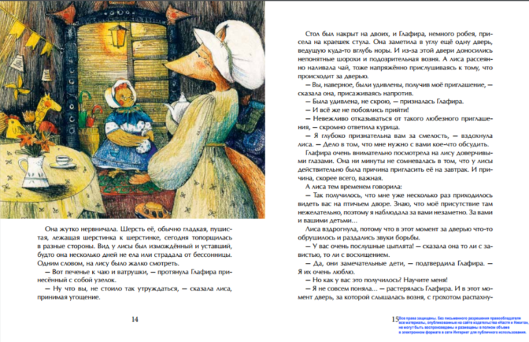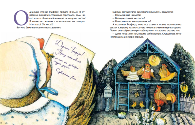Однажды курице Глафире пришло письмо. В конверте оказалось приглашение на завтрак. От кого? От лисы! Воспитанная Глафира, оставив своих послушных цыплят на соседку по курятнику, отправилась в гости. А как развивались события дальше, мы узнаем из этой забавной истории.