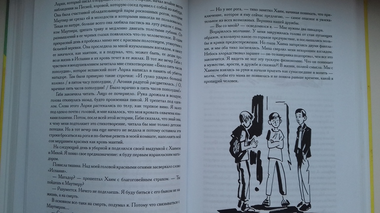 Книга оформлена черно-белыми иллюстрациями, но шрифт достаточно мелкий.