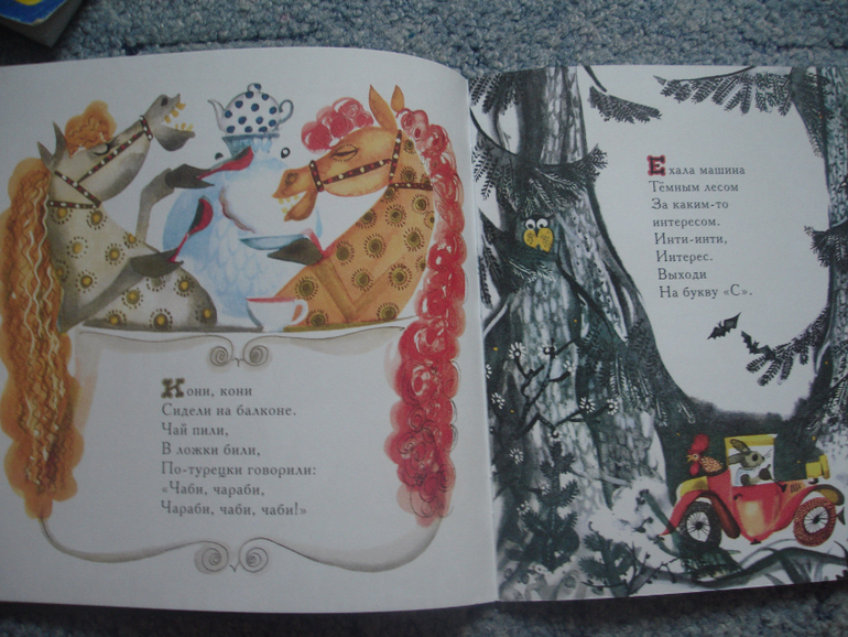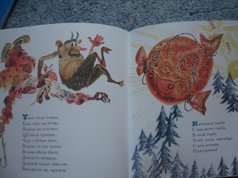 «Плыл по морю чемодан» прикупили. Саня любит считалки. Интересная подборка. Мне иногда хотелось, чтобы ещё было поменьше коричневого в иллюстрациях, чтобы они были чуточку сочнее, но, скорее всего, это невозможно. Хорошая книга.