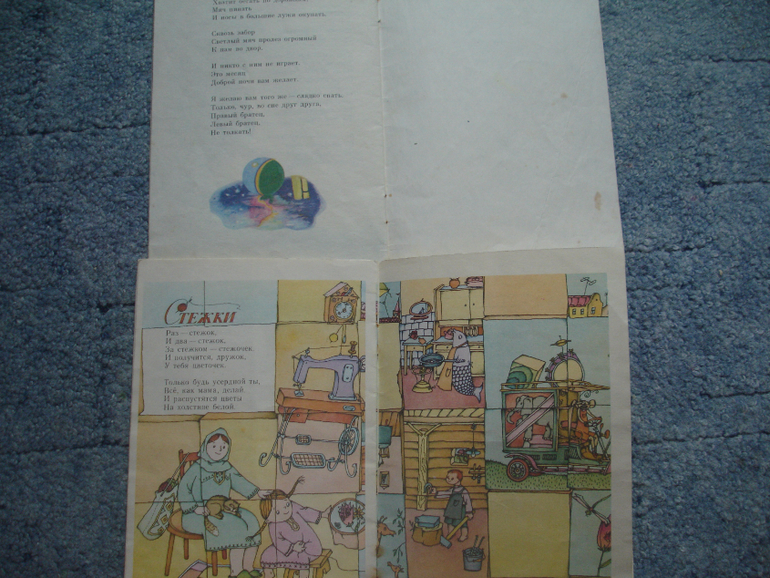 Вот «Младший брат» Барто тоже из гостей. Не цветная, но интересно рассматривать. Сане понравился цикл. Хочу попробовать на волне успеха в следующем месяце подсунуть сборник Барто, который у нас никак не идёт.