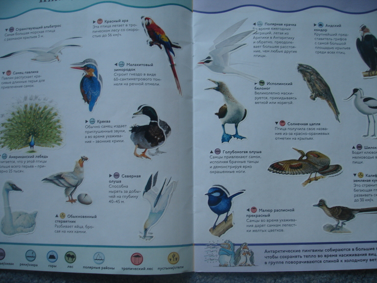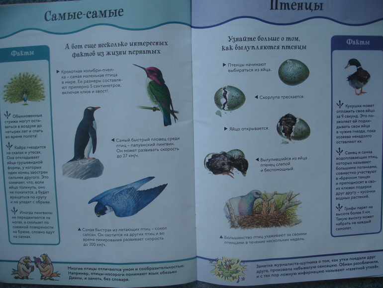 Пусть не смущает вид наклеек. Там тоже есть, что читать. Лена, если ты читаешь, ещё раз спасибо! Мы не только всё наклеили, но и изучили. Некоторые факты Саньке рано, я выбирала, что зачитывать. Сыну очень понравилась идея делить птиц по местам обитания, переспрашивал постоянно, кто где живёт. И скоростями птиц всерьёз заинтересовался. Я всё меряю машинами: почти как машина, как машина, быстрее, чем машина. Я сама никогда не задумывалась, почему сапсан назван сапсаном (тот, что поезд). А теперь понятно, что в честь самой быстрой птицы в мире. Про вылупление из яйца Сане понравилась страничка.