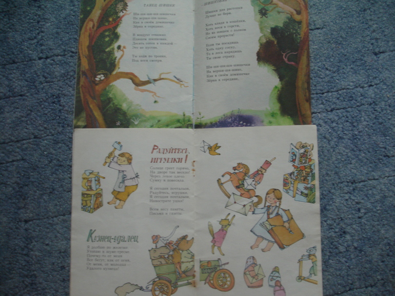 Иллюстрации к сборнику Е.Благининой для меня - один из эталонов чёрно-белой иллюстрации. Как нарисовать красиво. Книга очень старая. Несмотря на то, что подборка стихов немного девачковая, Саня слушал хорошо.