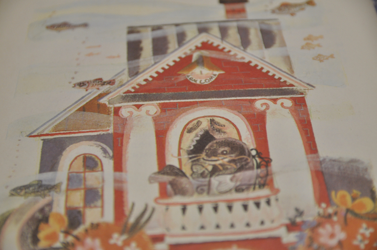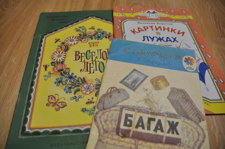 С. Маршак "Багаж" в иллюстрациях Лебедева. Ну как-то пока не очень у нас Маршак идет, именно стихи. Туговато. Хотя смеялся над тем фактом, что собачка выросла за время пути).