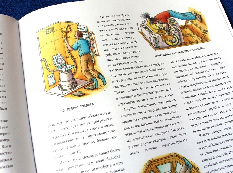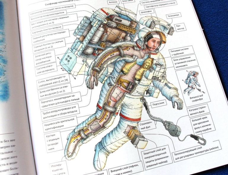 Текст адаптирован для понимания детьми (и мамами) - даже 5-летка все более-менее понимал. НО! Особенность книги в том, что информация не поверхностная (это скафандр, это ракета). Информация очень детализирована. Детализирована до взрыва мозга мамы. Такие подробности вы не найдете ни в одной детской энциклопедии - это следующий шаг в увлечении ребенка космосом и техникой.