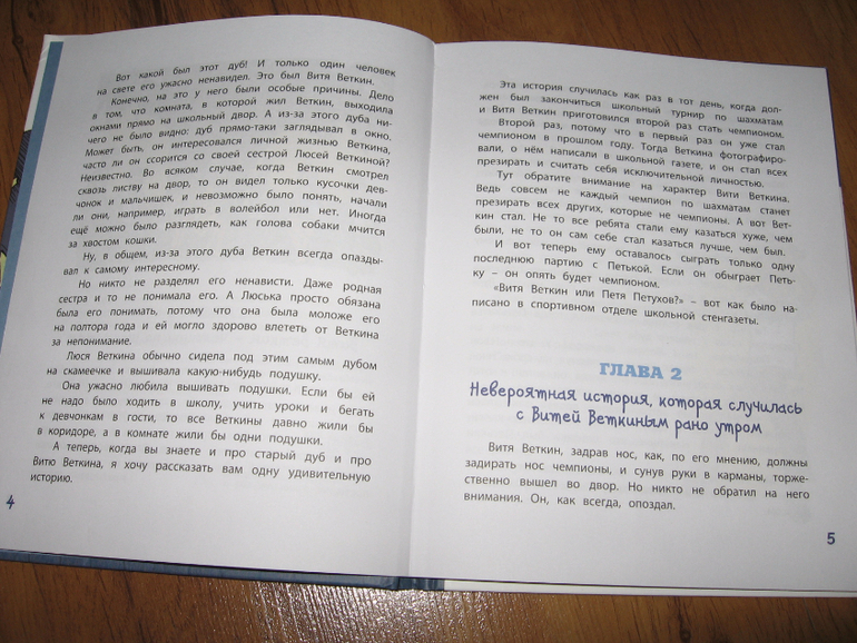 Внутри книги живет мальчик Витя, который ужасно возненавидел большой старый дуб, который растет во дворе. А все потому, что ветки дуба практически заглядываю в окно Витиной комнаты и закрывали весь обзор. Но такие чувства к дубу Витя Веткин испытывал в одиночку, все остальные дуб любили.
