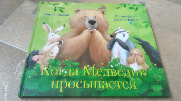 Купила по какой-то акции прямо в издательстве "Поляндрия" "Когда Медведик просыпается". В принципе, книга неплохая, особенно учитывая, что досталась она мне за 250 рублей (по цене Лабиринта, даже со скидкой, покупать бы не стала). Текст тут вторичен, главное - иллюстрации, они бесподобны, Медведик совершенно очарователен. Сама сказка о том, как после зимней спячки в лесу проснулся голодный Мишка. И никак он не может наесться! Чего он только не пробовал - и травку, и землянику, и на рыбалку с барсуком сходил, и все никак - "но хочется еще". А в это время его друзья в медвежьей берлоге готовят праздник, который называется "Медведик просыпается", пекут лепешки, вешают гирлянды...Медведик прибегает на запах, а в берлогу влезть не может - застрял!!!