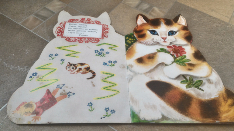 Вот это любимые развороты- где девочка упала ("Бух") и где киса плачет