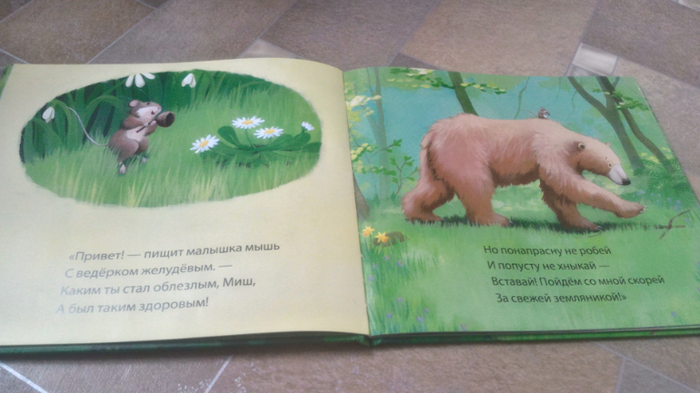 Текста на странице не много, малышам не надоедает слушать.