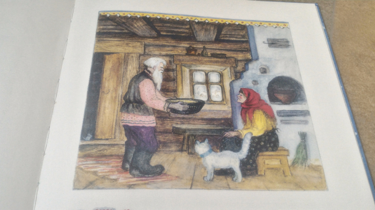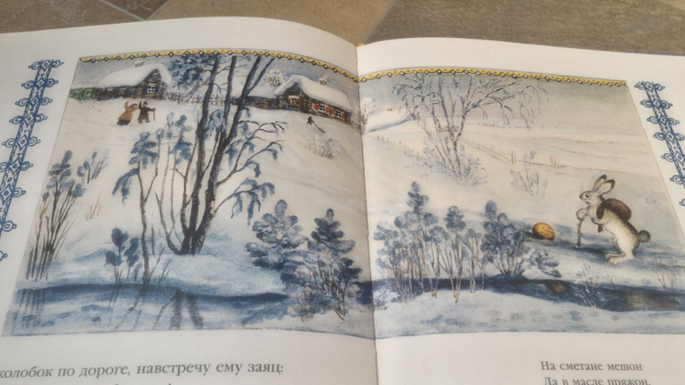 "Колобок" - это мой фаворит. Сама сказка есть у нас еще в 3-х или 4-х книжках, но я всё-таки не удержалась и купила эту. Она прекрасна. Рисунки Юрия Васнецова - произведения искусства. Я раньше не понимала, почему все так их хвалят, но вот увидела этого сказочного зимнего "Колобка" и пропала...Он бесподобен, такие оттенки, нюансы, как нарисована деревня, дом старика и старухи!!! Само издание тоже отличное - плотные тонированные странички великолепно оттеняют иллюстрации. И твердая обложка тут как нельзя более кстати - хочу такую красоту сохранить для потомков. Жаль, нет у меня нормального фотоаппарата, чтобы по достоинству показать эту красоту (все деньги уходят на книги