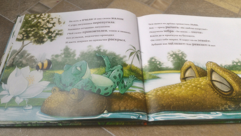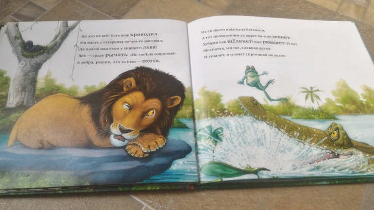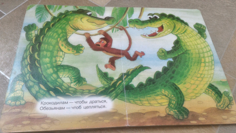 Хорошая книжка, странички из плотного картона, только вот крокодил подкачал, а жаль...