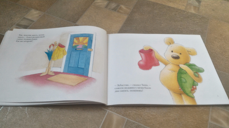 Начали читать "Тяпу-растяпу" от "Мелик-Пашаева". Чудесная, милая, очаровательная книжка, такой здесь обаятельный медвежонок, я млею от заплатки у него на боку) Книгу любят оба моих ребенка, а я читаю и надеюсь, что хотя бы на примере Тяпы научу их убирать за собой и не разводить бардак