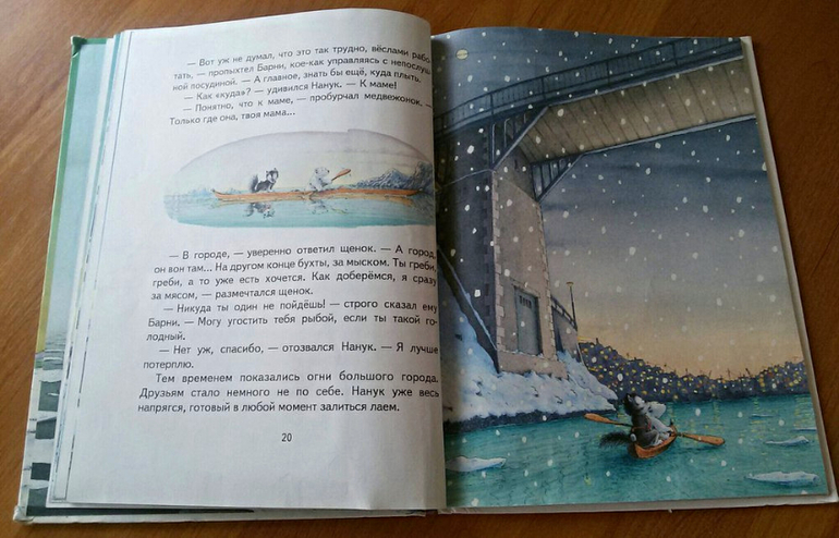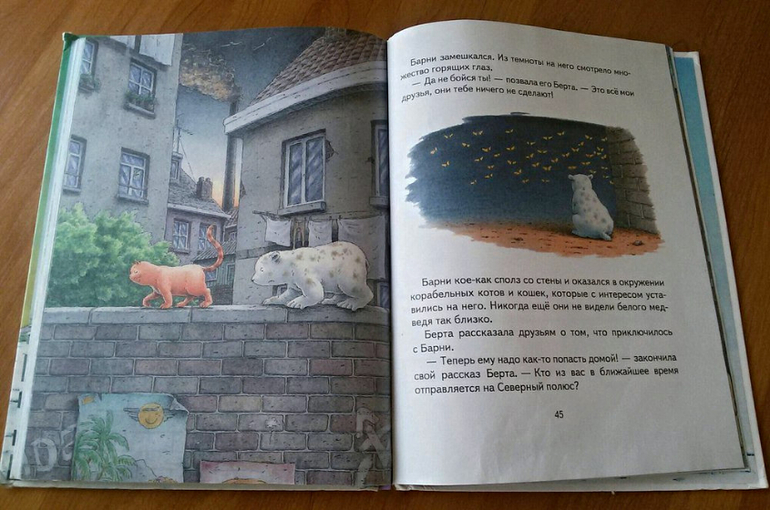 Очень часто в отзывах и дневниках чтения я раньше видела медвежонка Барни. Конечно же, я загорелась желанием эти книги купить. Но к тому времени их уже нигде не было, а покупать дорогую книгу с рук, уже имея дома такое обилие различной литературы, совсем не хотелось. Каково же было мое счастье, когда в нашей местной библиотеке мы нашли несколько книг про этого медвежонка. И каково же было мое разочарование, когда три первые попытки прочитать книгу детям закончились провалом. Младший сын убегал сразу. Для него в книге очень много текста и нет машинок. И хоть там нарисованы любимые кошечки и собачки, они настолько мелкие на фоне домов, мостов, айсбергов и кораблей, что нужно очень постараться, чтобы их рассмотреть. Дочка сказала, что книжка скучная, первый рассказ мы читали три дня. Стоило мне на что-то отвлечься и дочка сразу убегала. Так что, я все больше радуюсь нашей библиотеке, где ребенок сам выбирает книжки. Многие книги можно посмотреть, почитать и решить, нужны ли они в домашнюю библиотеку.
