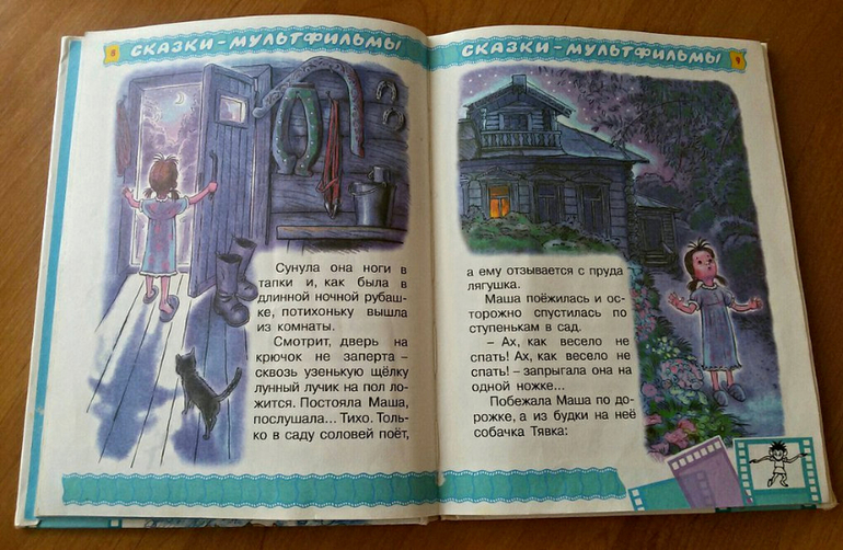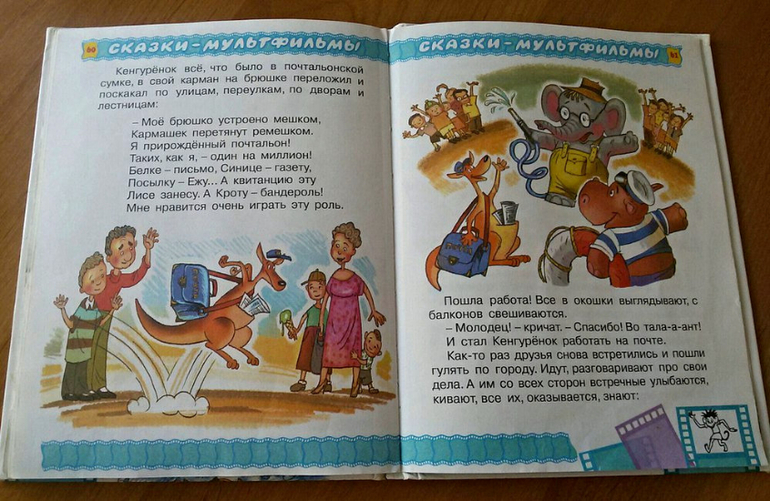 Вот приглянулась дочке эта серия "Мультсказка". Мы про Машу пытались читать в другой книге, не пошло. А эту слушает с удовольствием. Но больше ей нравится про вредную принцессу, которая любила кушать поросячьи хвостики и тем самым совсем разорила свое королевство. Мне больше приглянулась последняя история про трех друзей. Слоненок, бегемот и кенгуру очень хотели танцевать в балете, но оказалось, что у них нет таланта. Они очень расстроились, но потом каждый нашел себе любимое занятие, которое у него отлично получалось. Тут-то они и поняли, что талант их совсем не в балете.