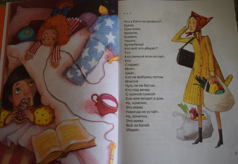 7) Г.Остер "Петька-микроб". Считаю, что книга для более старших детей. Точно 6+. Но Димка слушал с удовольствием. Может половину не понял, но мы с ним активно обсуждали тему иммунитета, после прочтения одной из глав. Тоже полезно. Через годок надо будет взять ещё почитать.8) Г.Лебедева "Мамин день рождения". Очень хорошая книга. В ней и стихи и рассказы. Стихи Димка не любит, но даже здесь слушал. А рассказы вообще отличные.