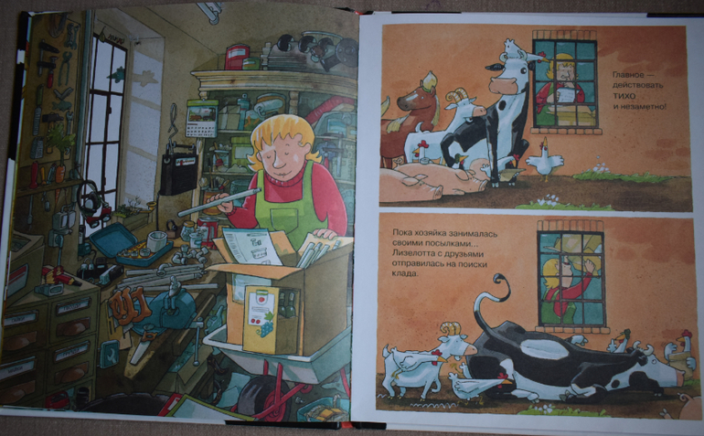 3)"Лизелотта ищет клад". Вполне интересная и МНОГО картинок (как я люблю!). Очень много мелких деталей, которые я сама с удовольствием рассматриваю. Прочитали 2 раза.