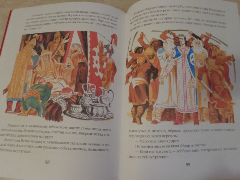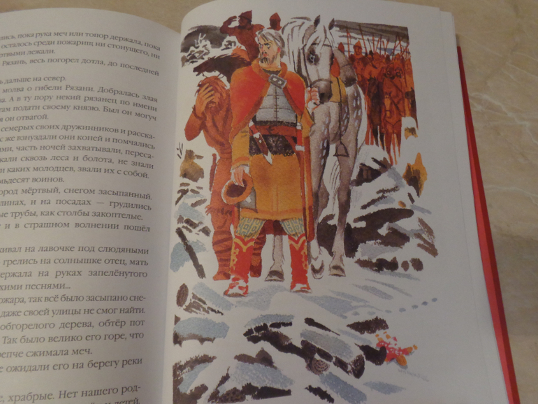 Это, пожалуй, моя самая любимая история в книге - о первом на Руси партизане, о храбром воине, мстившем за разорение родной Рязани; о том, кто заставил рать Батыя думать, что "убитые русы оживают и вновь кидаются в бой". Вот каков был "светлоокий витязь, храбрейший из храбрых, Евпатий Коловрат". Печально окончилась эта история, но не чувство уныния охватывает после прочтения, нет! Это чувство гордости, желание подражать в смелости; это то, что вдохновляет на новые подвиги и смелые решения!
