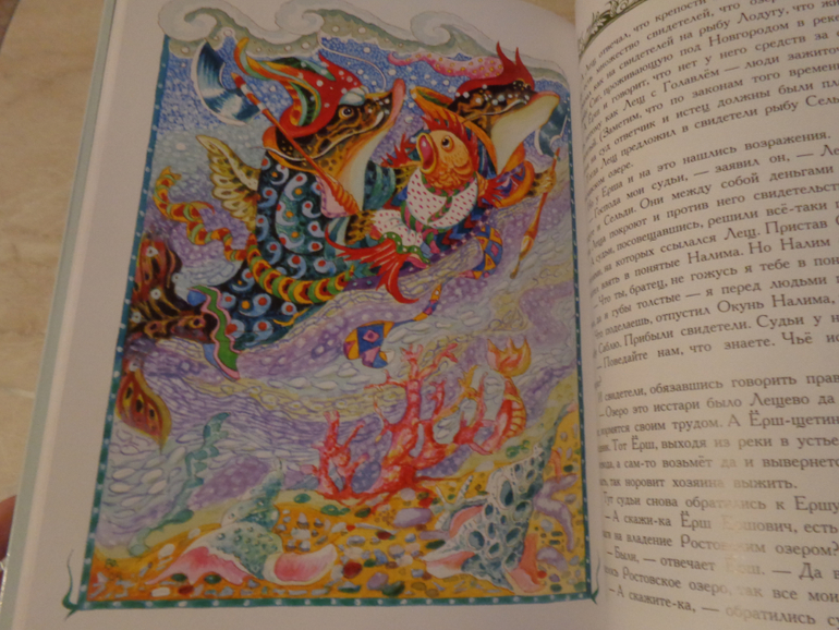 Шрифт чёткий, но мелковат. Читать эту книгу мне показалось труднее, чем первую - всё-таки стили изложения отличаются. Одно из главных достоинств этой книги, за исключения богатого содержания, разумеется, - это бесподобные иллюстрации Георгия Юдина. Они яркие, подробные, нереально красивые! Для меня это художник, умеющий быть разным в каждой книге!