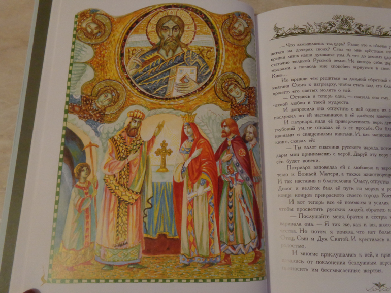 "Равноапостольная святая княгиня Ольга" рассказывает о жене князя Игоря (опекуном которого был вещий Олег). Ольга отомстила древлянам за смерть своего мужа (надо сказать, жестоко так отомстила), а позже стала первой на Руси, принявшей христианскую веру. Она пыталась обратить в новую веру сына, но тот боялся гнева знати и язычество на христианство не менял, а позже её внук Владимир сам принял христианство и крестил всю Русь))