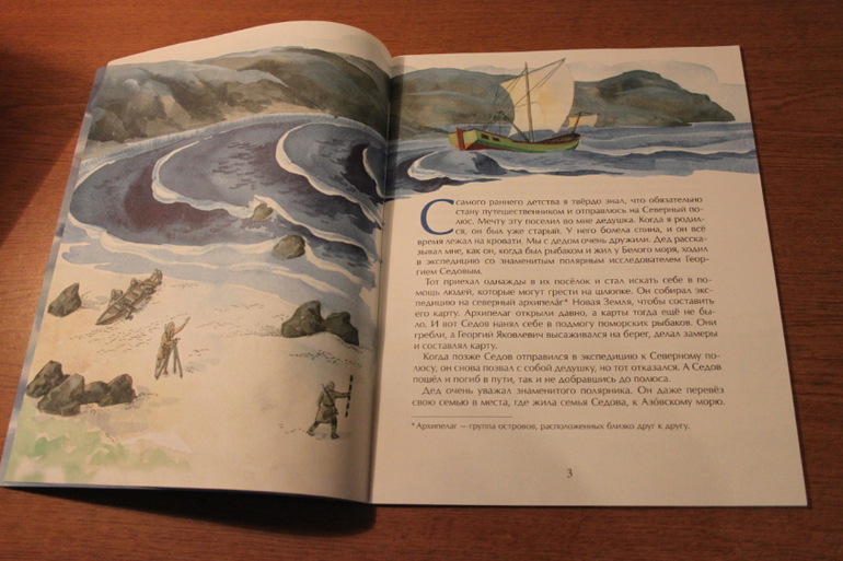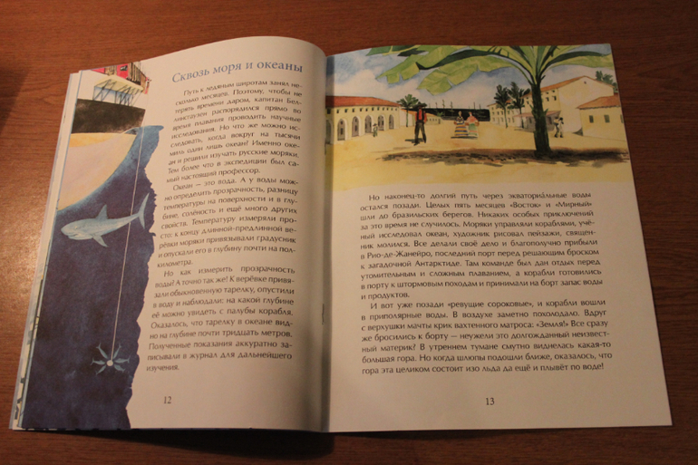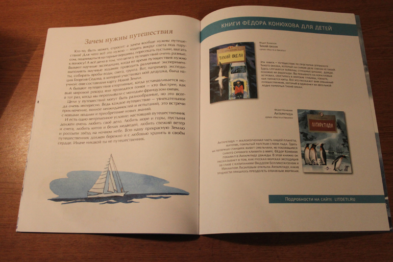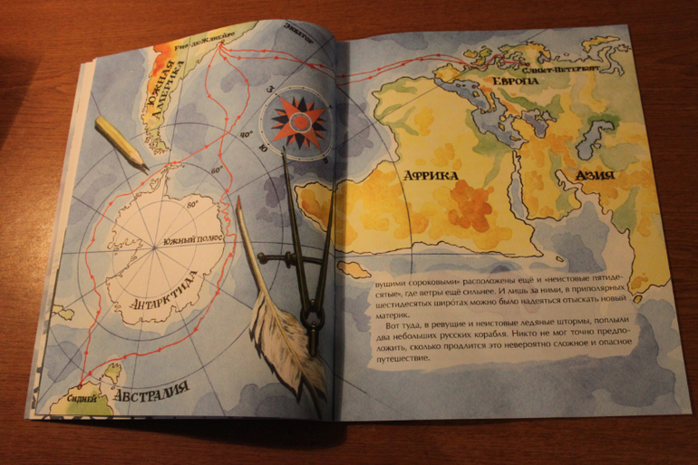 Написано тем же лёгким языком, но читать также рекомендую ближе к пяти - шести годам, потому что много информации, много текста и малышу может быть тяжело слушать. У Никиты внимание постоянно терялось. Всё-таки тема путешествий ему не так сильно близка, пока что. Он любит путешествовать, но возраст ещё такой, когда поход в соседний парк - уже путешествие)))