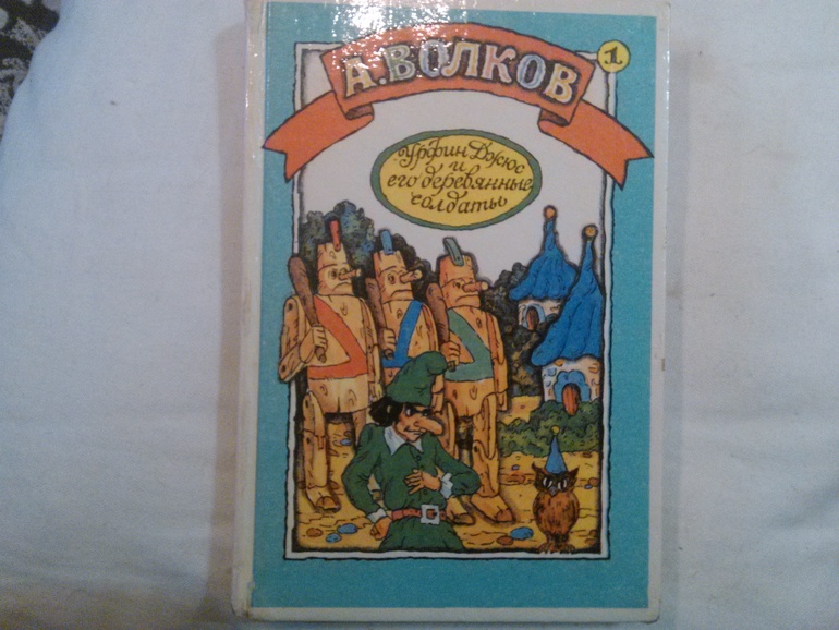 В общем, я такую книгу увидела впервые. Да передумала искать что-то лучше, современного тиража. Вот несколько фотографий(это все одна и та же книга, с разных сторон), но главную изюминку тут никак не сфотографируешь: с одной стороны книги"Волшебник...", а, если перевернуть книгу, там, вверх тормашками, начинаются "Деревянные солдаты". Вот такие чудеса! Муж говорит, что очень любил эти книги( всего,их три, а всего, стало быть, 6). Иллюстраций в них не много, но мне они нравятся, тихие, добрые, детские.