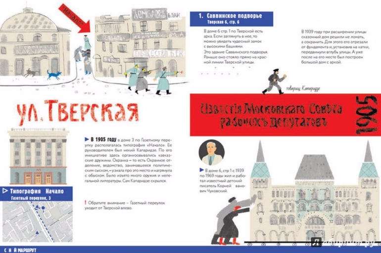 Для тех, кто любит прогулки по Москве, - новый необычный путеводитель. Найдите в столице следы русских революций 1905 и 1917 года: бои на Пресне, митинги у памятника Пушкину, обстрел Кремля большевиками. Также путешественникам предлагается маршрут для автопрогулки и обзор шедевров конструктивизма. Путеводитель поможет вам полнее и ярче представить себе улицы и жителей Москвы столетней давности. Для семейного путешествия.